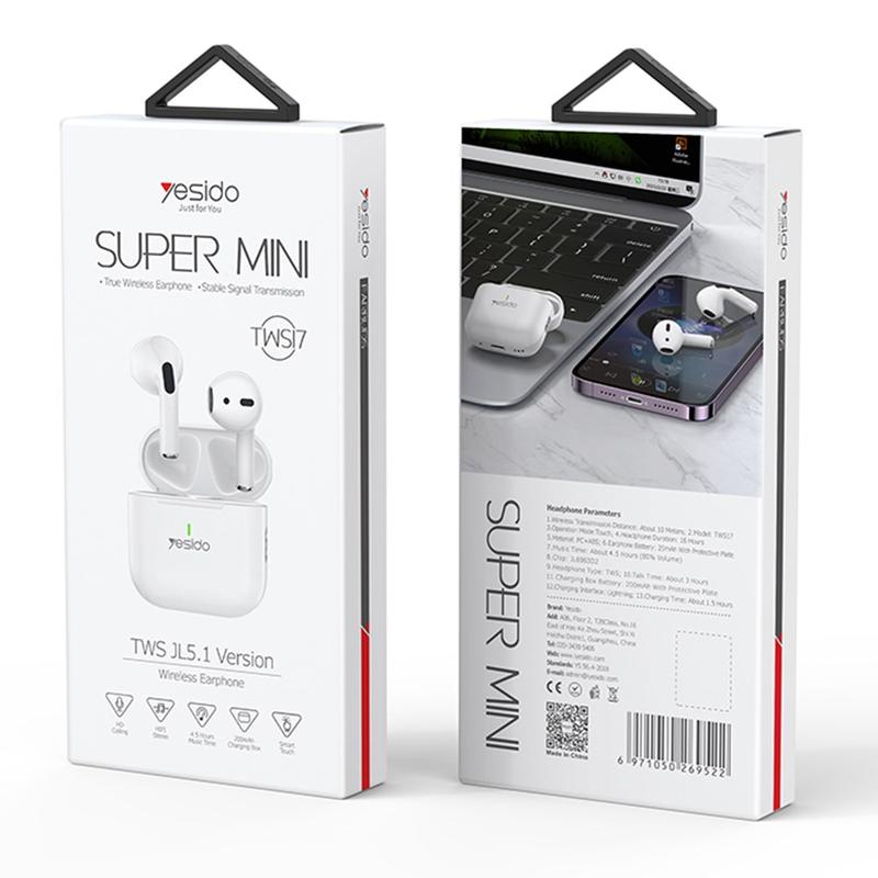 The YESIDO TWS17 wireless headset delivers rich, room-filling audio in an ultra-compact design. Powered by the JL6983 Bluetooth-compatible 5.1 chip, these semi-in-ear earbuds stay connected up to 10 m and recharge fast, keeping your soundtrack live from breakfast to bedtime.
