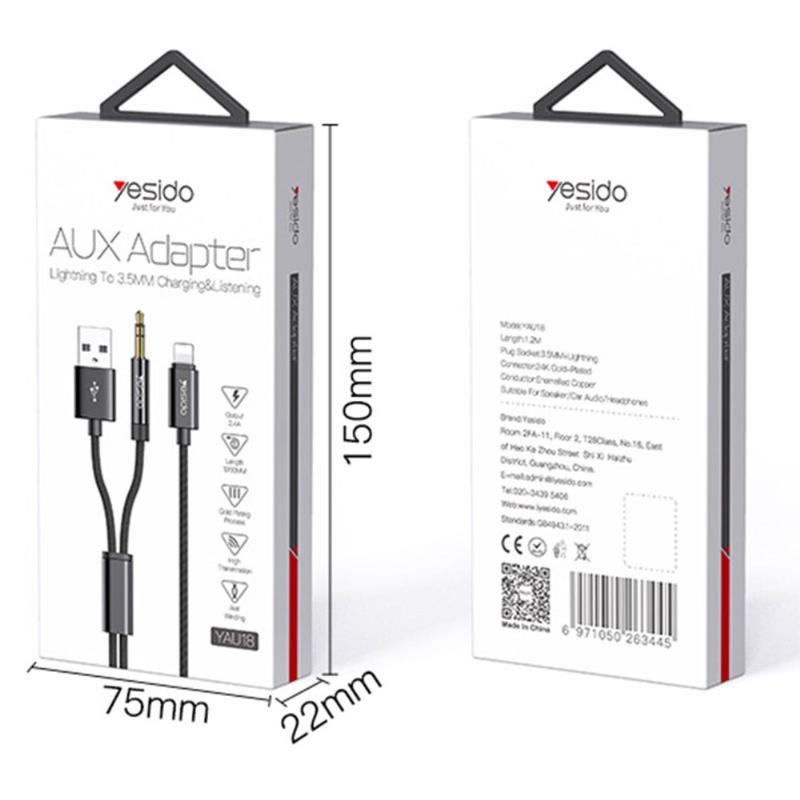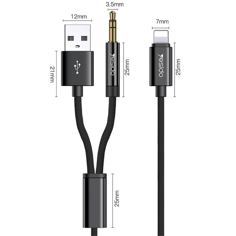 Yesido YAU18 2-in-1 Lightning AUX & Charging Cable - High-Quality Audio & Fast Charging