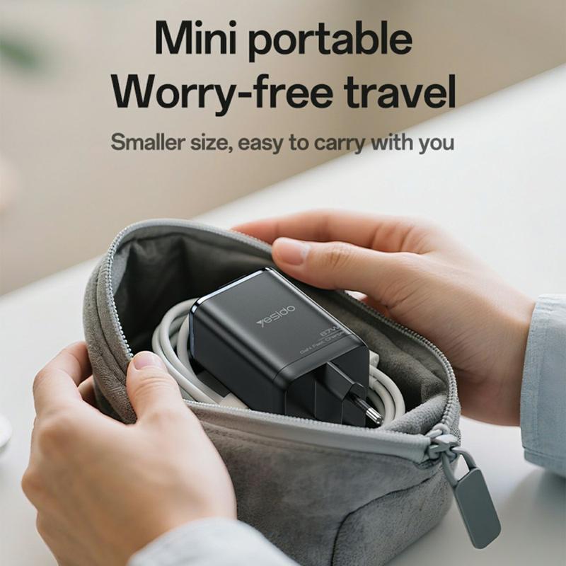 The YESIDO YC100 combines speed, portability, and safety in one sleek design. Its retractable Type-C cable eliminates clutter, while the GaN chipset ensures efficient and cool performance — making it the ideal travel and everyday charging companion.