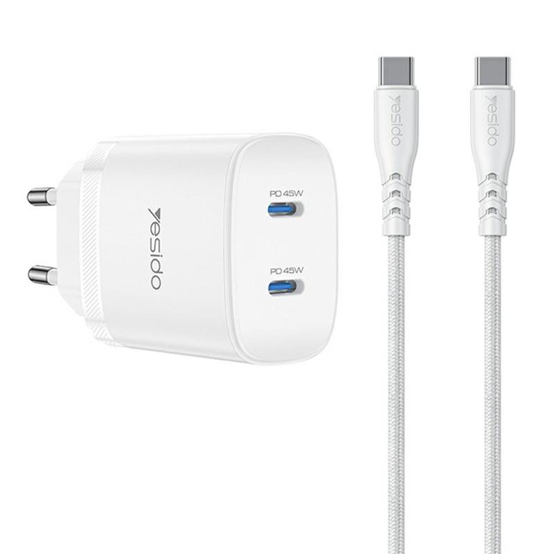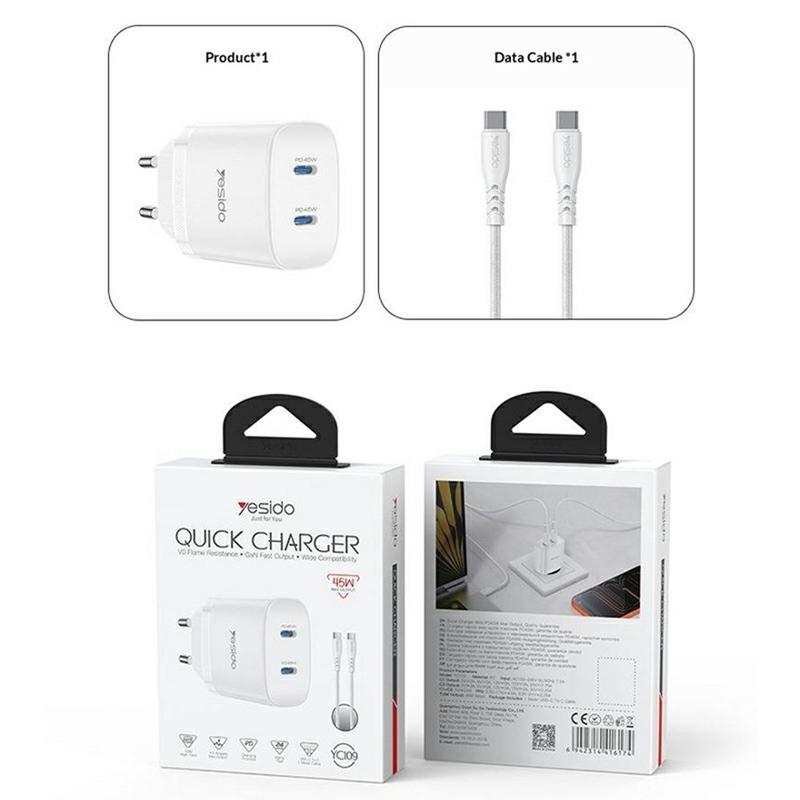 Yesido YC109 45W Dual USB-C PD Charger with USB-C Cable - Fast Charging Wall Adapter