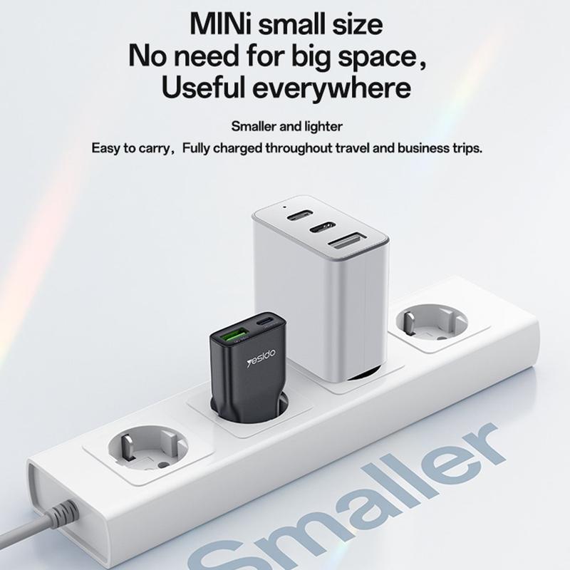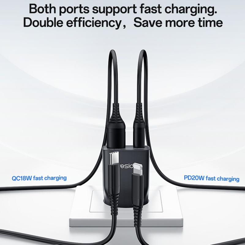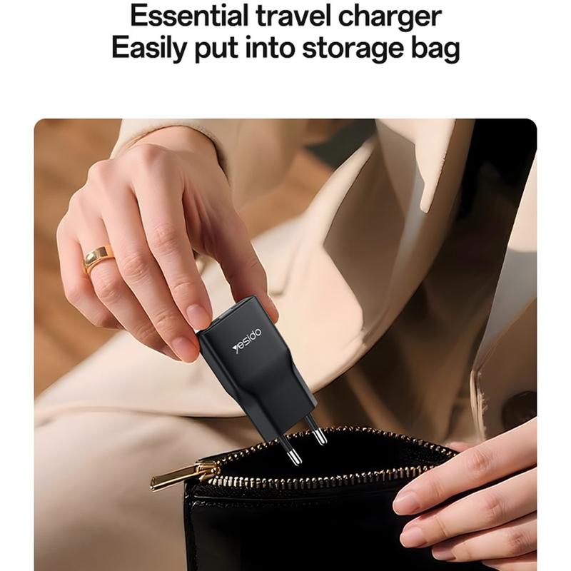 Charge smarter and travel lighter with the Yesido YC112 ultra-thin wall charger. Designed for everyday convenience, this compact dual-port adapter combines a USB-C port and a USB-A port in a slim body that fits easily into bags, pockets, desk drawers, and travel kits. It is a practical solution for users who want one charger for both newer USB-C devices and older USB-A cables, without carrying a bulky adapter.