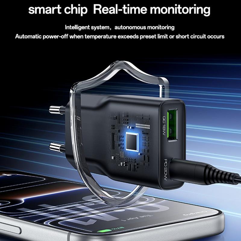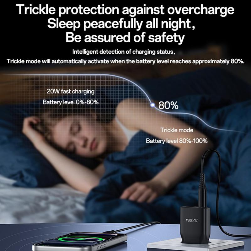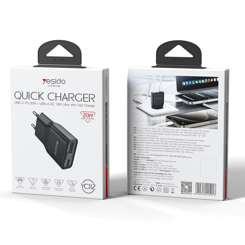YESIDO YC112 20W Dual-Port Fast Charger - Ultra-Slim USB-C / USB-A Wall Adapter, PD & QC, EU Plug