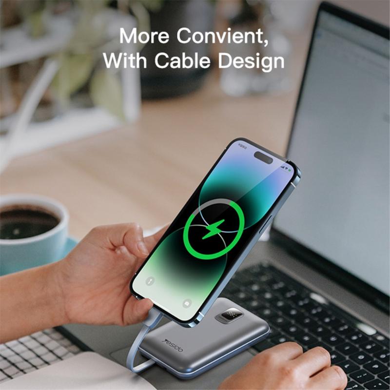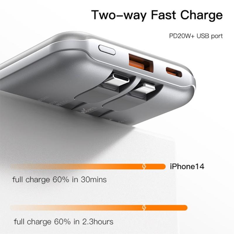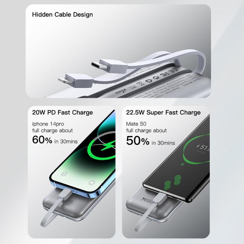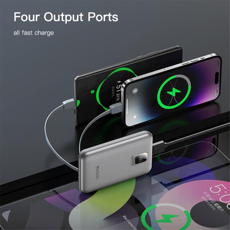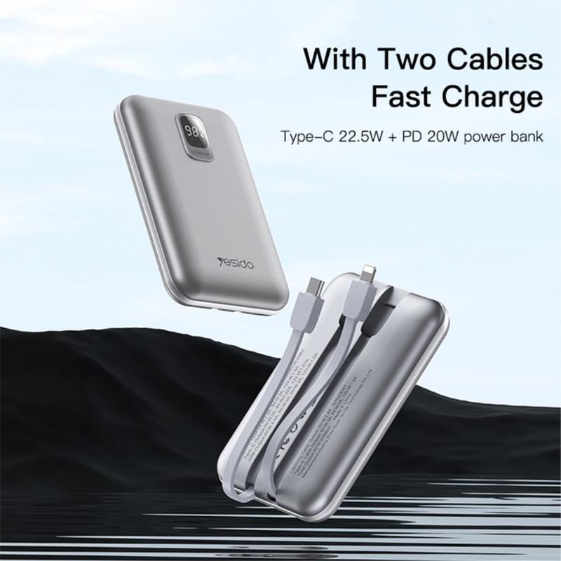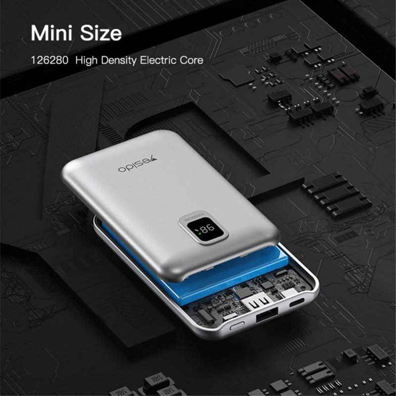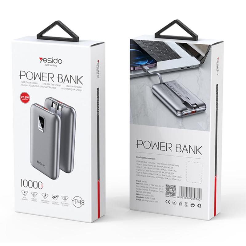 YESIDO YP48 Compact Size 10000mAh Power Bank Portable Charger with iOS+Type-C Cable