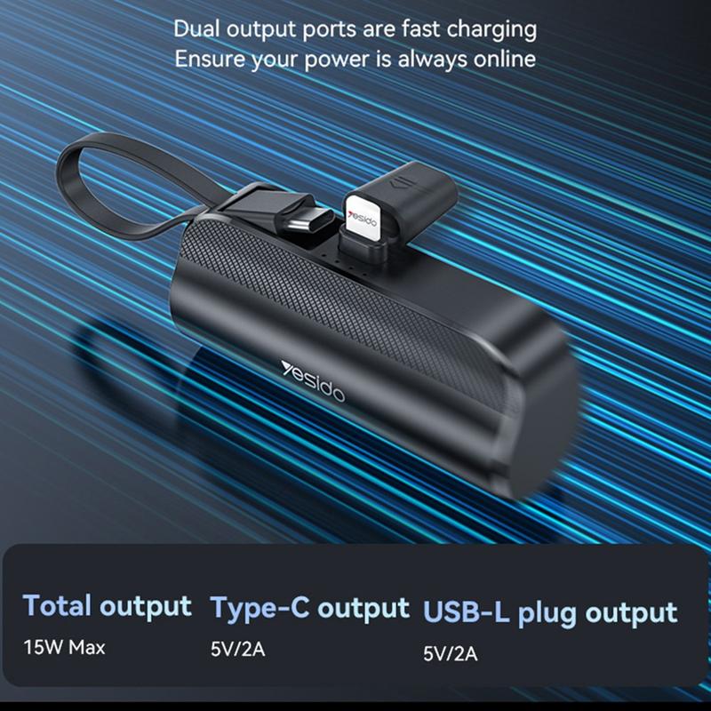 Yesido YP68 5000mAh Lightning Power Bank with USB-C Cable and Hidden Stand