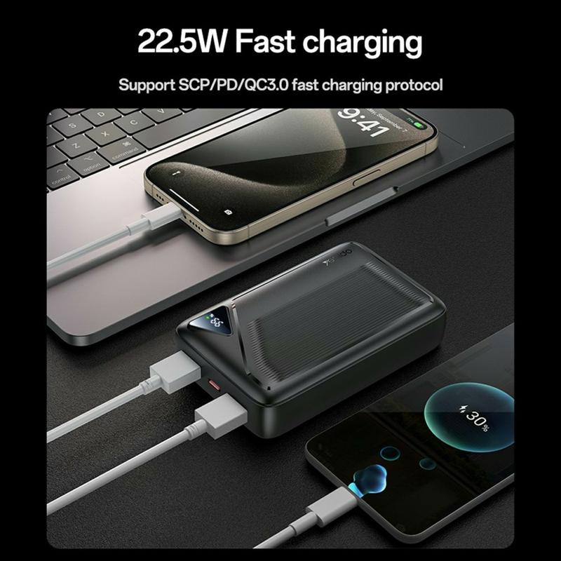 This power bank combines fast charging technology, safety, and portability in one sleek package. Its intelligent power management system ensures optimal efficiency while the LED display gives you total control over your battery status. Designed for modern users, it delivers strong performance in a slim, pocket-friendly form factor.