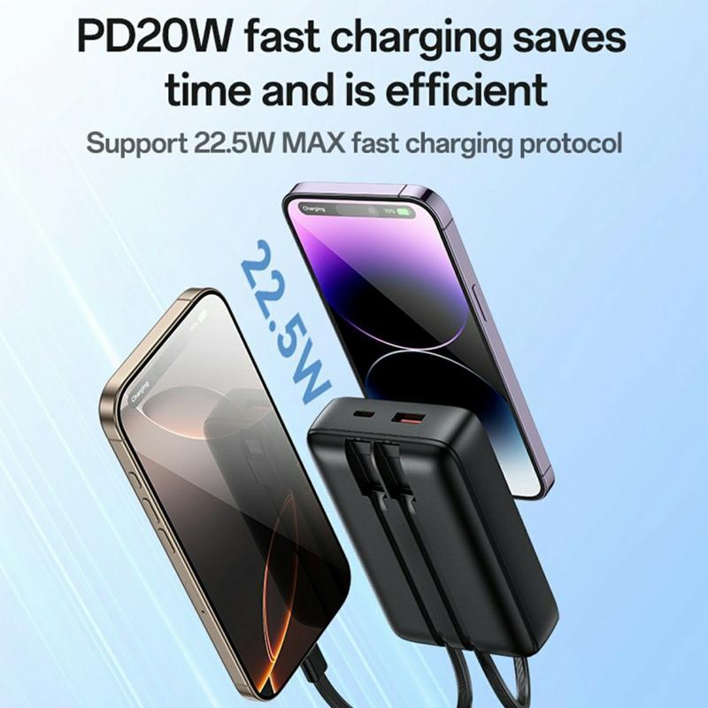 Stay fully powered wherever you go with the YESIDO YP85 Power Bank, engineered for efficiency and convenience. With a large 20000mAh capacity and 22.5W fast charging technology, it provides quick and reliable energy for smartphones, tablets, and other portable devices. The integrated Type-C and Lightning cables eliminate the need to carry extra cords, while the smart digital display shows real-time battery status. Compact, powerful, and versatile, it’s the ultimate everyday charger for travel, work, or outdoor adventures.