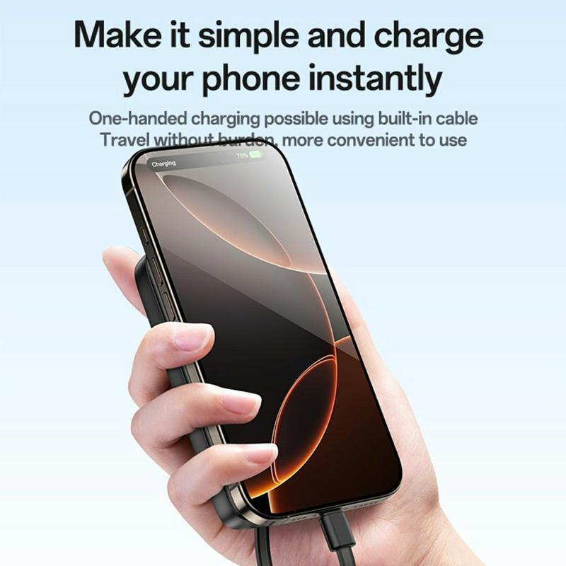 - Built-in cables: Integrated Type-C and Lightning (Lightning-compatible) cables ensure you’re always ready to charge without extra accessories.