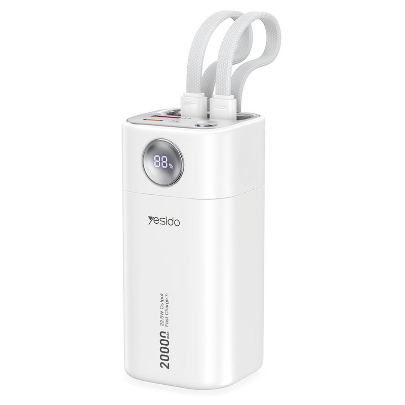 Yesido YP86 20000mAh Fast-Charge Power Bank - 22.5 W, Digital Display & Built-In USB-C / Lightning Cables