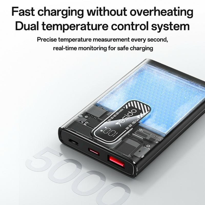Yesido YP92 Ultra-Thin Power Bank 5000mAh – 22.5W Fast Charging with Digital Display