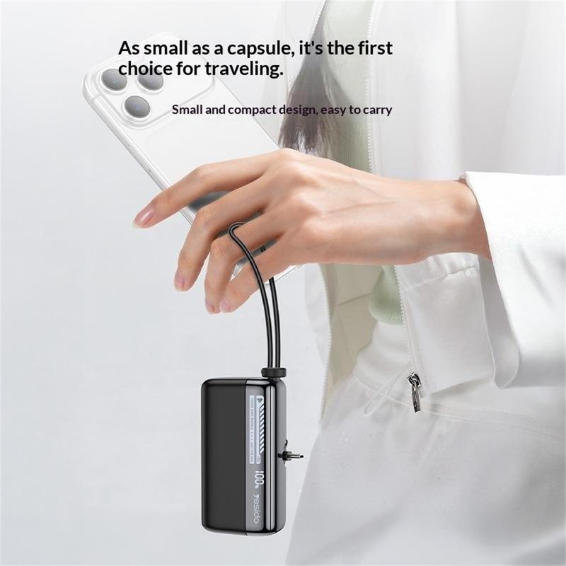 YESIDO YP99 Power Bank is a practical portable charger designed for fast, convenient charging at home, at work, or while travelling. With a 10000mAh battery capacity, compact capsule-style design, and built-in USB-C to Lightning cable, it offers a simple all-in-one charging solution for modern smartphones and other compatible devices. Its portable size makes it easy to carry in a bag, pocket, or everyday travel setup.
