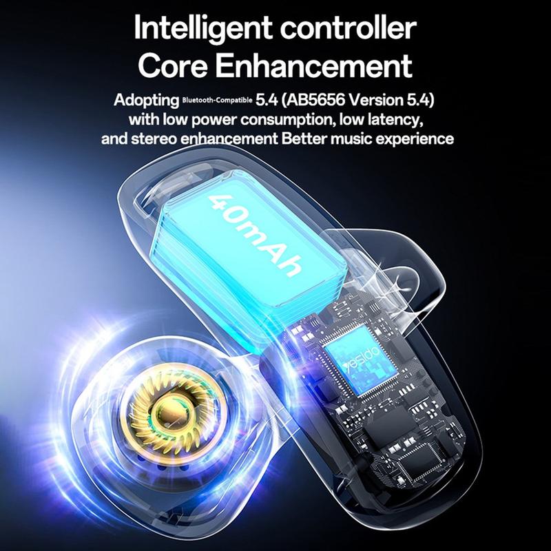 Yesido YSP27 Open-Ear Wireless Headphones - ENC Noise-Cancelled HiFi Audio, 5 h Playtime & Memory Hook Comfort