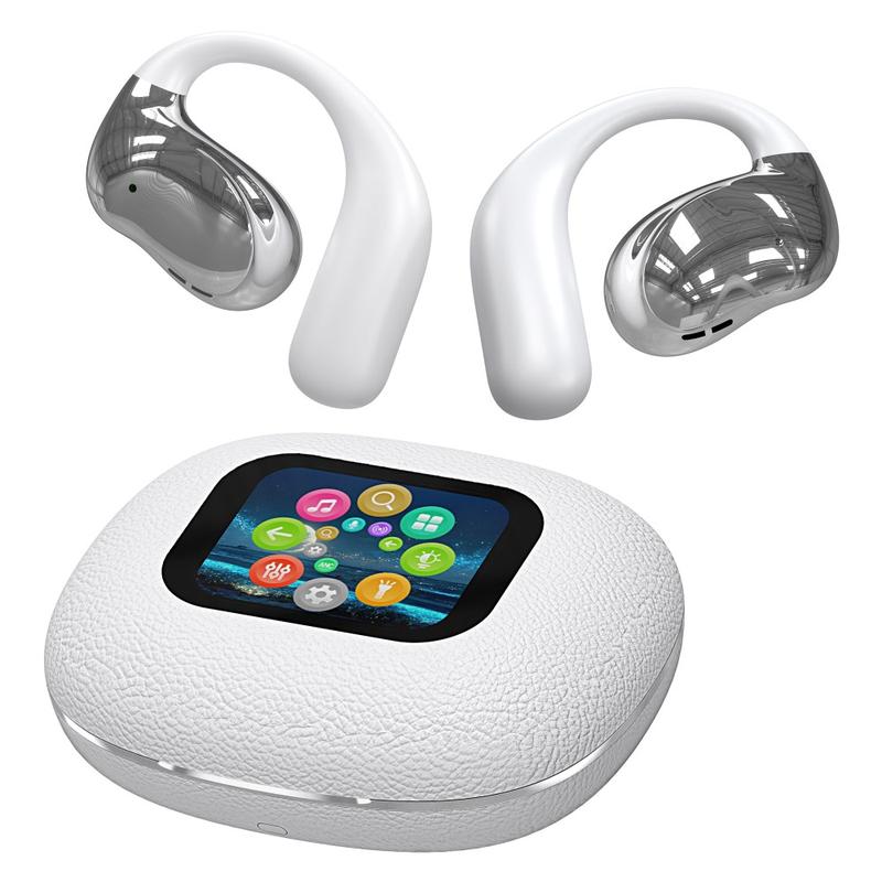 The open-ear design is not only comfortable but also helps maintain situational awareness, making these earphones ideal for outdoor enthusiasts and urban commuters. Additionally, the full-color touch screen in the charging case adds a layer of sophistication and functionality rarely found in similar devices.