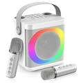 YS307 Home Karaoke Bluetooth Speaker RGB Light Loudspeaker with 2 Microphones - Silver