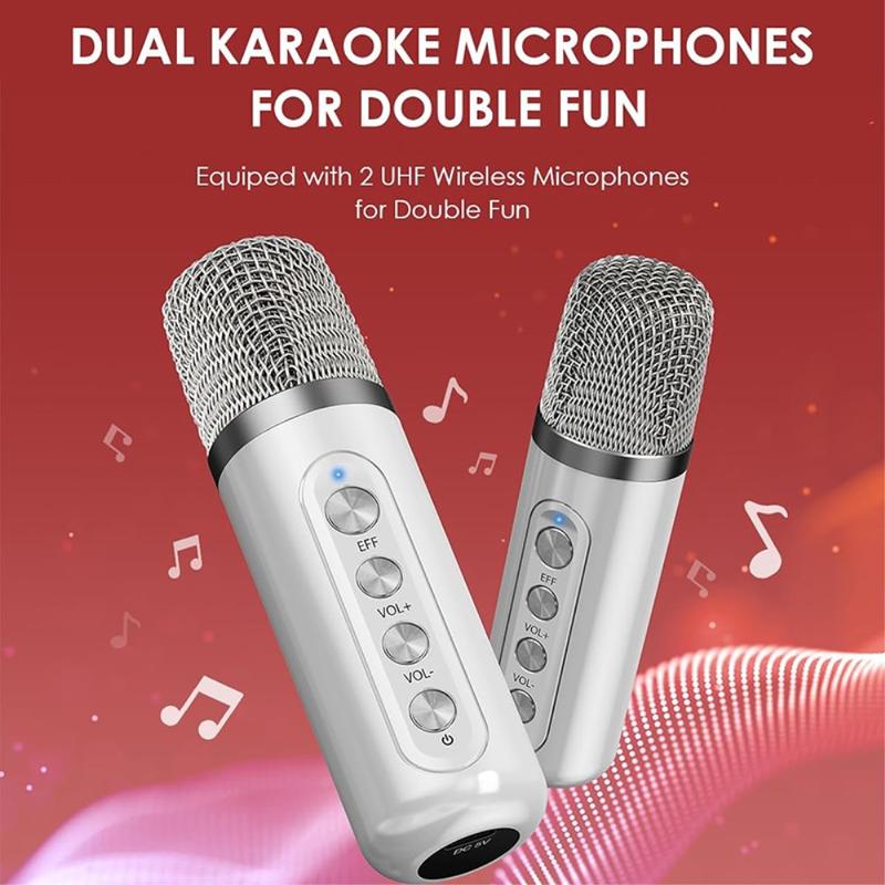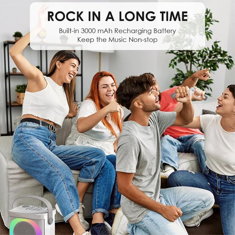 The portable karaoke machine has a built-in large-size professional tuning-grade speaker, which uses advanced audio drivers and digital signal processors to make the sound quality clearer and more stereoscopic and to eliminate all noise
