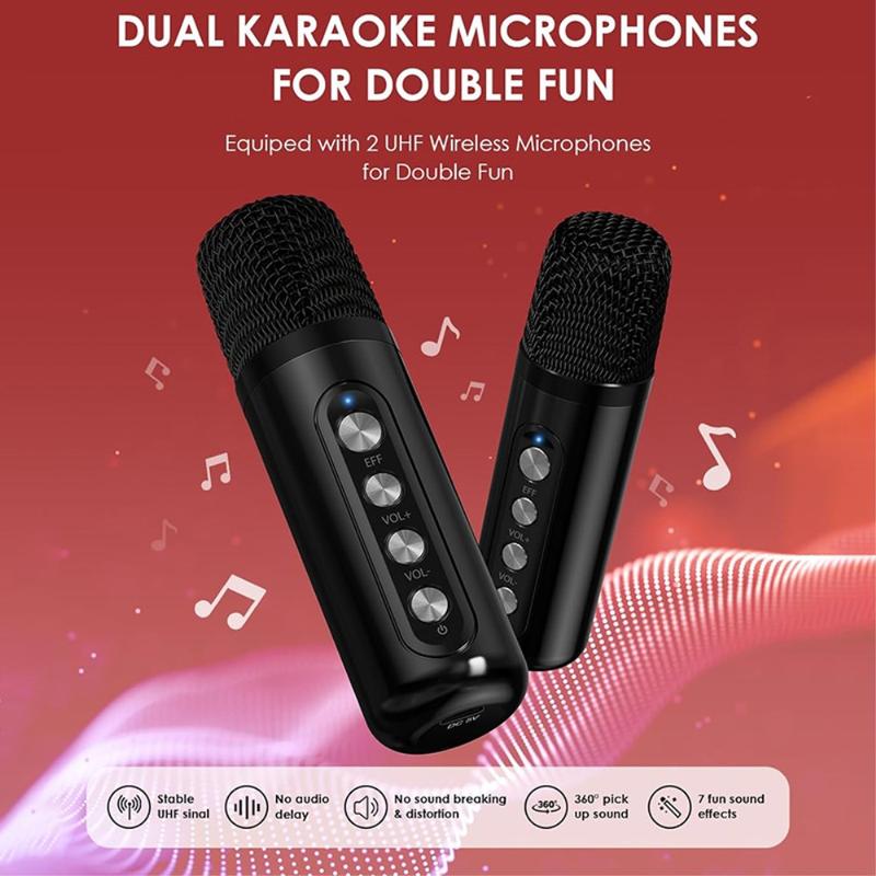 The portable karaoke machine has a built-in large-size professional tuning-grade speaker, which uses advanced audio drivers and digital signal processors to make the sound quality clearer and more stereoscopic and to eliminate all noise