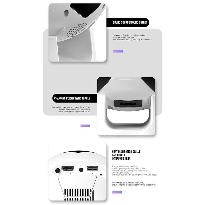 The YT600 football-design mini projector combines smart entertainment with a playful, compact form factor. Powered by Android 13.0, it gives you instant access to popular streaming apps without the need for external devices. With HD resolution, smooth performance, and modern wireless connectivity, it’s a versatile projector for home cinema, sports nights, gaming, or casual outdoor use.