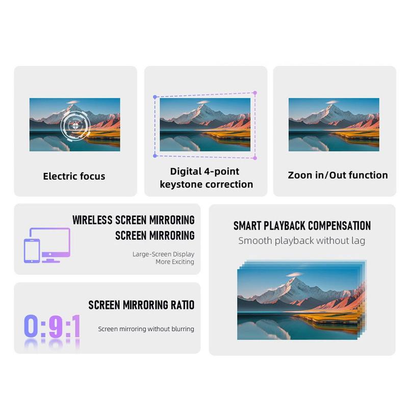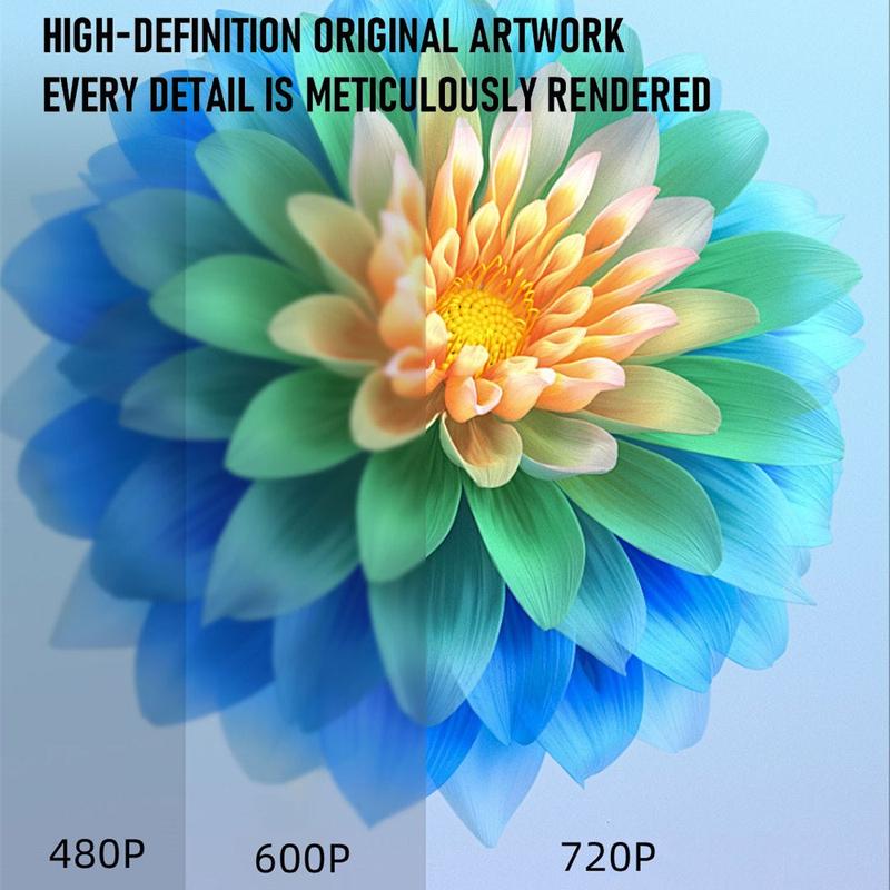Its lightweight and portable design makes setup quick and flexible—perfect for living rooms, children’s rooms, camping trips, or backyard gatherings. Despite its compact size, the YT600 delivers a clear, enjoyable viewing experience with low noise operation and built-in speakers.