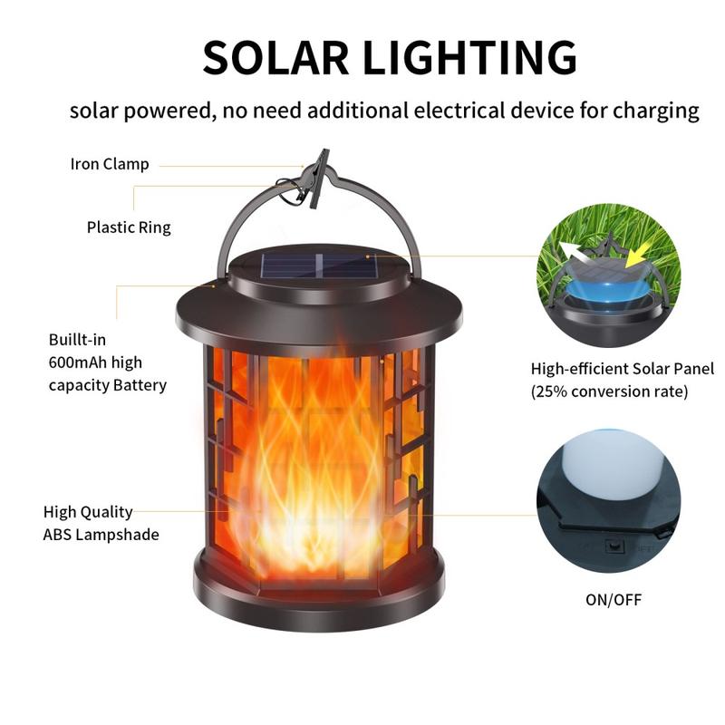 Create a warm, inviting atmosphere in your outdoor spaces with the YY-91008B Hanging Solar Lantern. Designed to simulate real dancing flames, this IP65 waterproof lantern combines solar-powered convenience and eye-catching style—perfect for gardens, balconies, patios, or walkways.