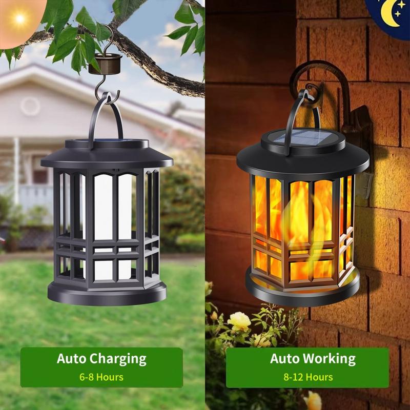 YY-91008C Flickering Flame Solar Hanging Lantern with IP65 Protection for Patio and Garden Decor