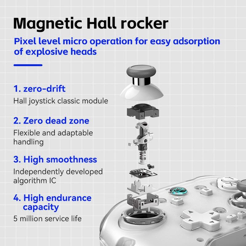- Hall Joystick Technology: Reduces drift and wear over time, offering better durability and accuracy compared to traditional joysticks.