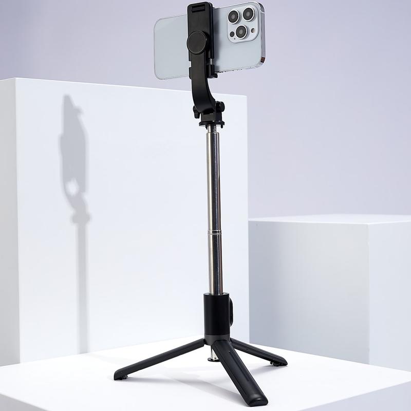 - Adjustable phone clip (60–85 mm) rotates 360° for instant portrait or landscape switching