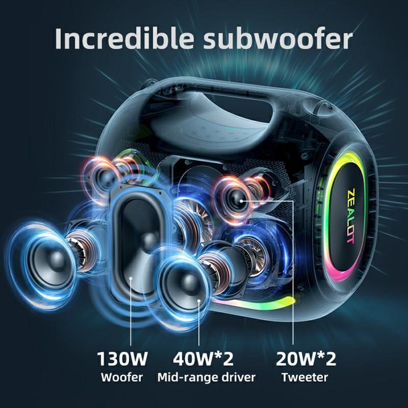 Zealot ZE21 250 W Outdoor Bluetooth 5.3 Party Speaker - 48 000 mAh Battery, TWS, RGB Lights, IPX6