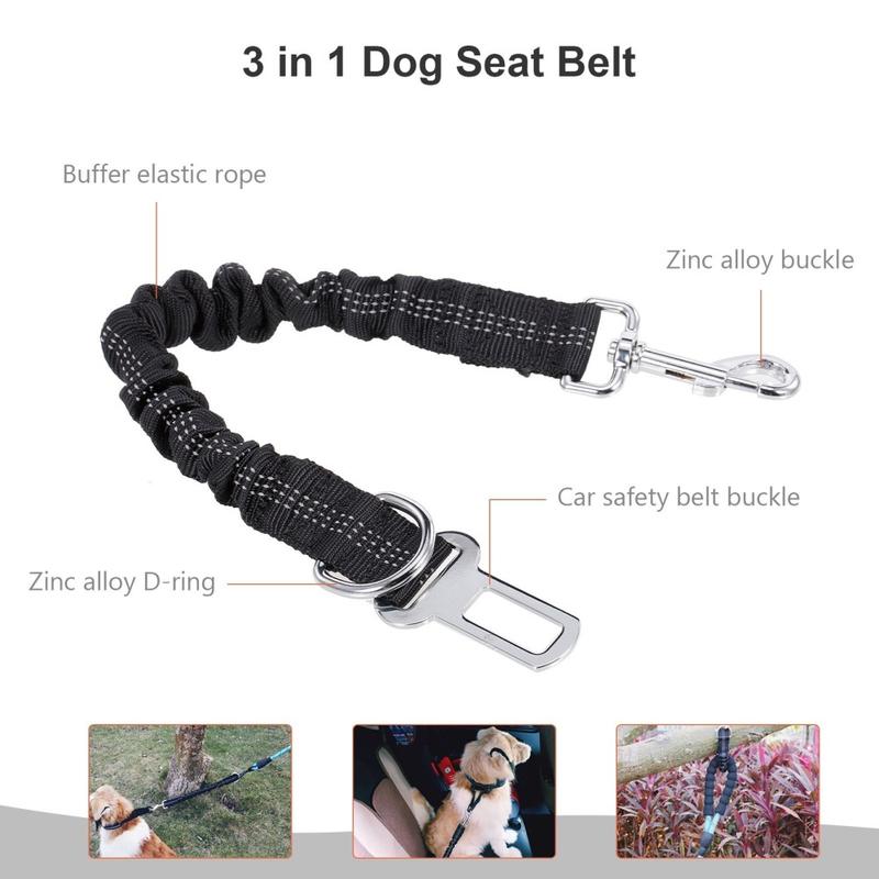 Zinc Alloy Multifunctional 3-in-1 Dog Seat Belt for Car - Harness with Bungee Buffer and Reflective Design