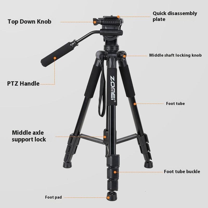 Capture every angle with confidence using the ZOMEi Q310 tripod, a versatile, heavy-duty support system for cameras and smartphones alike. With a strong aluminum-alloy frame, smooth fluid head, and full-height adjustability, this tripod is perfect for photography, videography, live streaming, and travel.