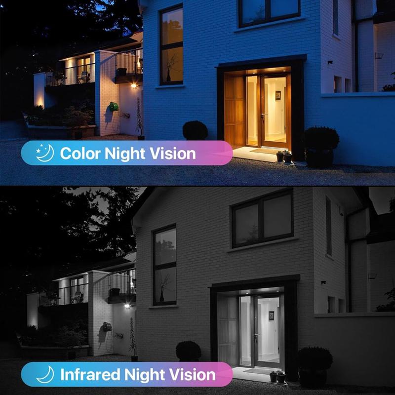 - Dual night-vision system: 6 array IR LEDs reach up to 30 m; 4 spotlights deliver full-colour images after dark.