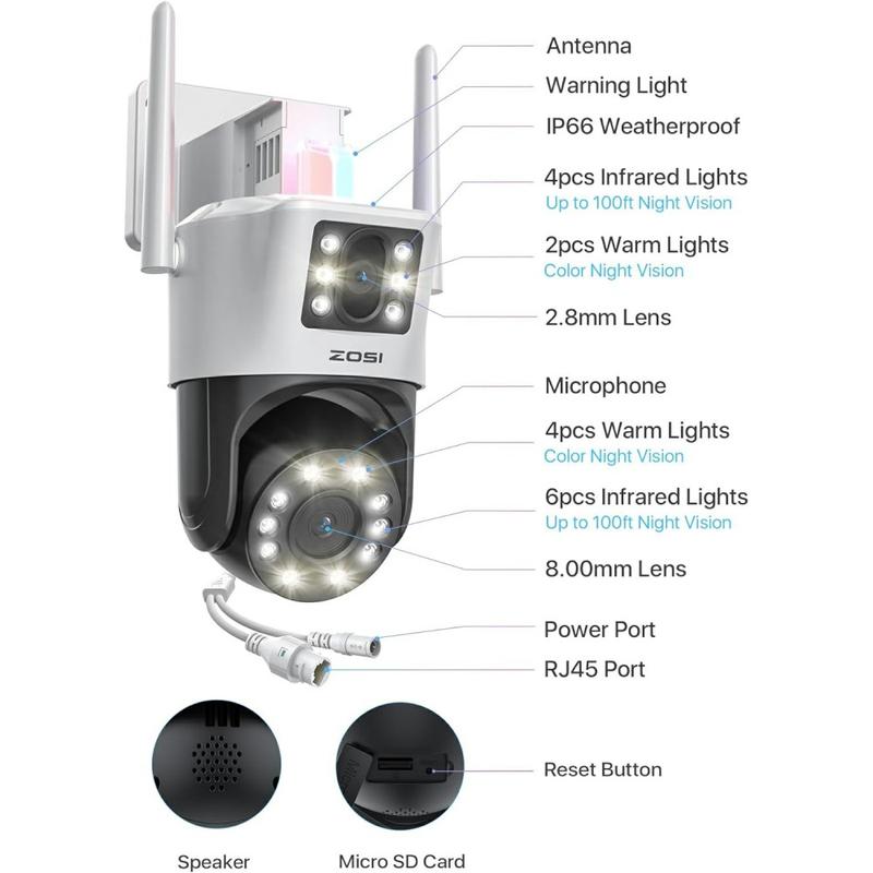 ZOSI C298Pro 8MP Dual-Lens PTZ Camera with AI Tracking and Colour Night Vision - 360 Degree Rotation, WiFi