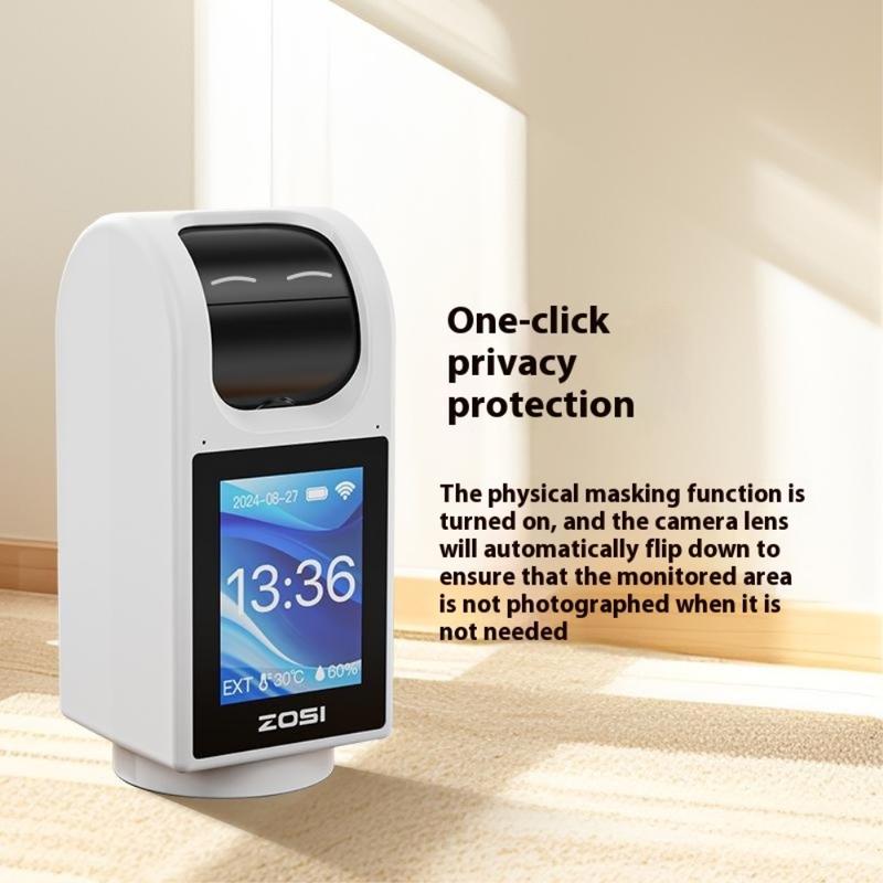 Enjoy peace of mind day and night with the ZOSI C520M. Its bright 2.8-inch screen shows Wi-Fi strength, time, weather and indoor climate at a glance, while the 4MP lens pans and tilts to follow every movement in crisp Quad-HD detail.