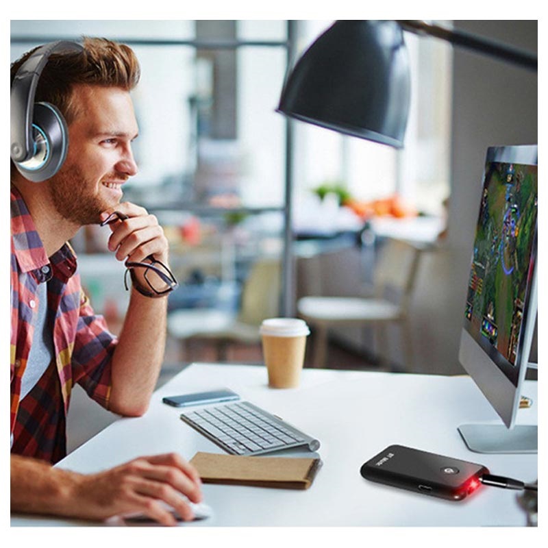Připojte jej k televizi nebo konzole pomocí 3,5mm zvukového portů a předejte zvuk do vašich sluchátka Bluetooth - užijte si hraní her, aniž byste někoho obtěžovali. Navrženo se dvěma 3,5mm zvukovými vstupy, port vysílače (TX) a portem přijímače (RX). Vestavěná dlouhodobá dobíjecí baterie a design přátelský k kapse vám umožní vzít ji kdekoli s sebou.